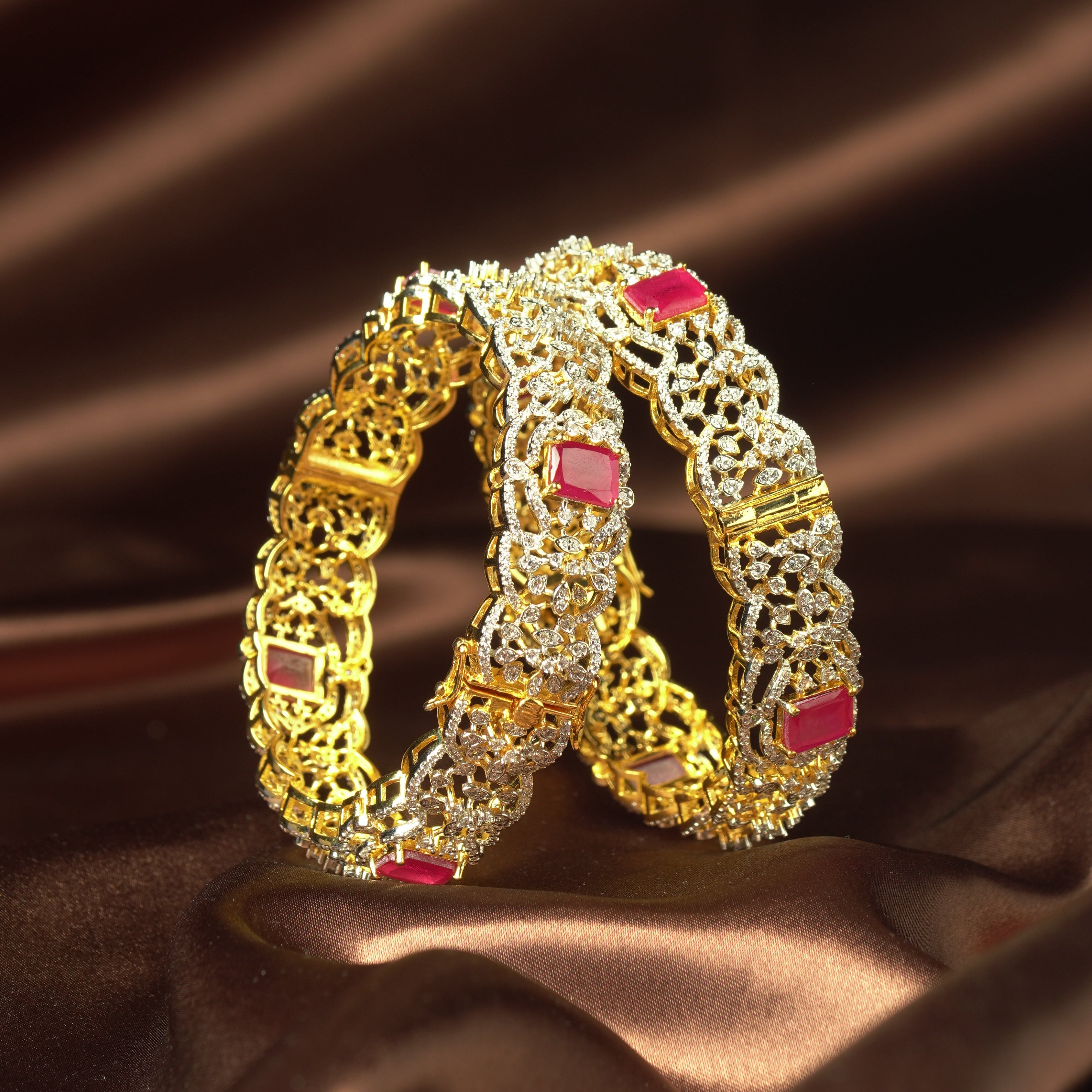 CZ Ruby Filigree Bangles