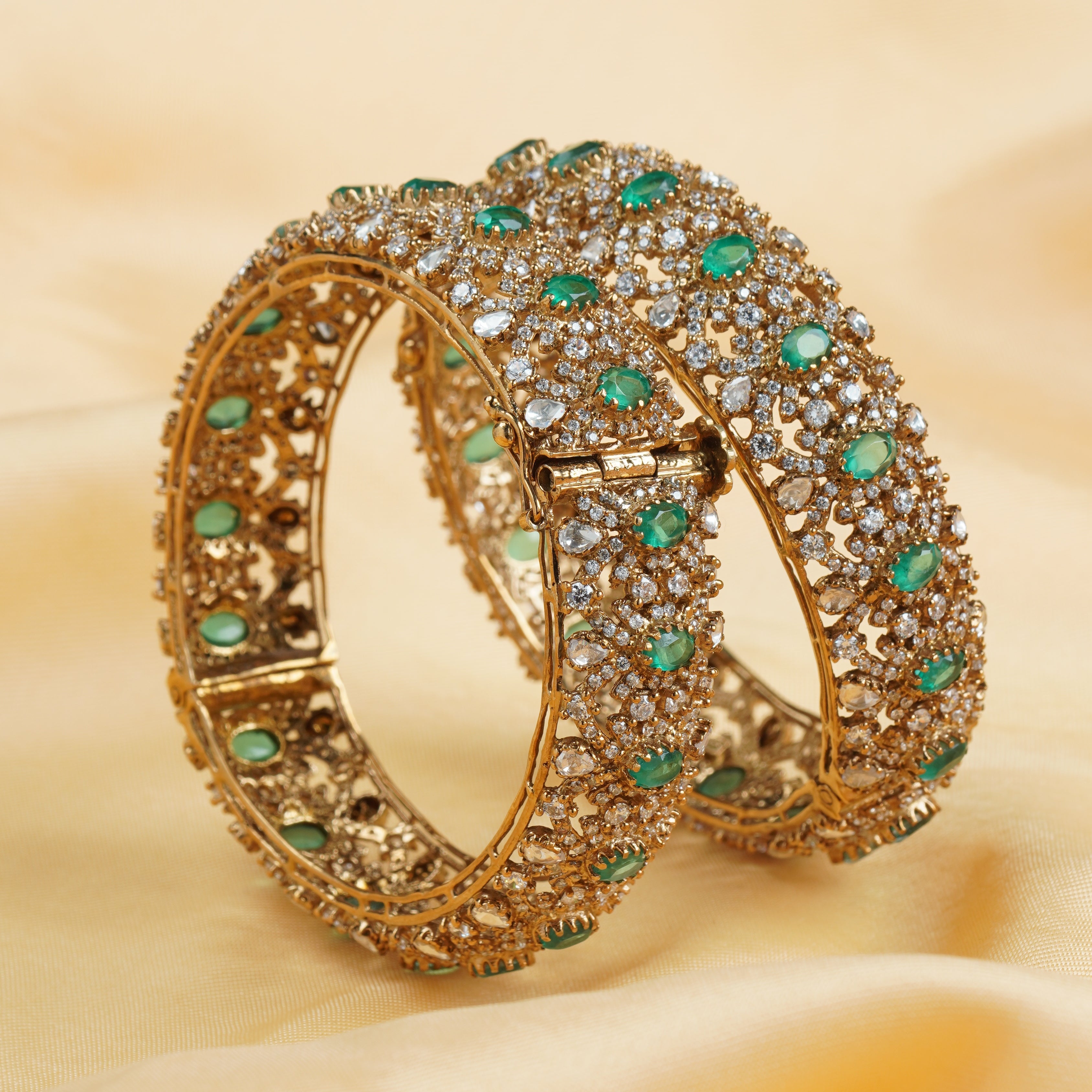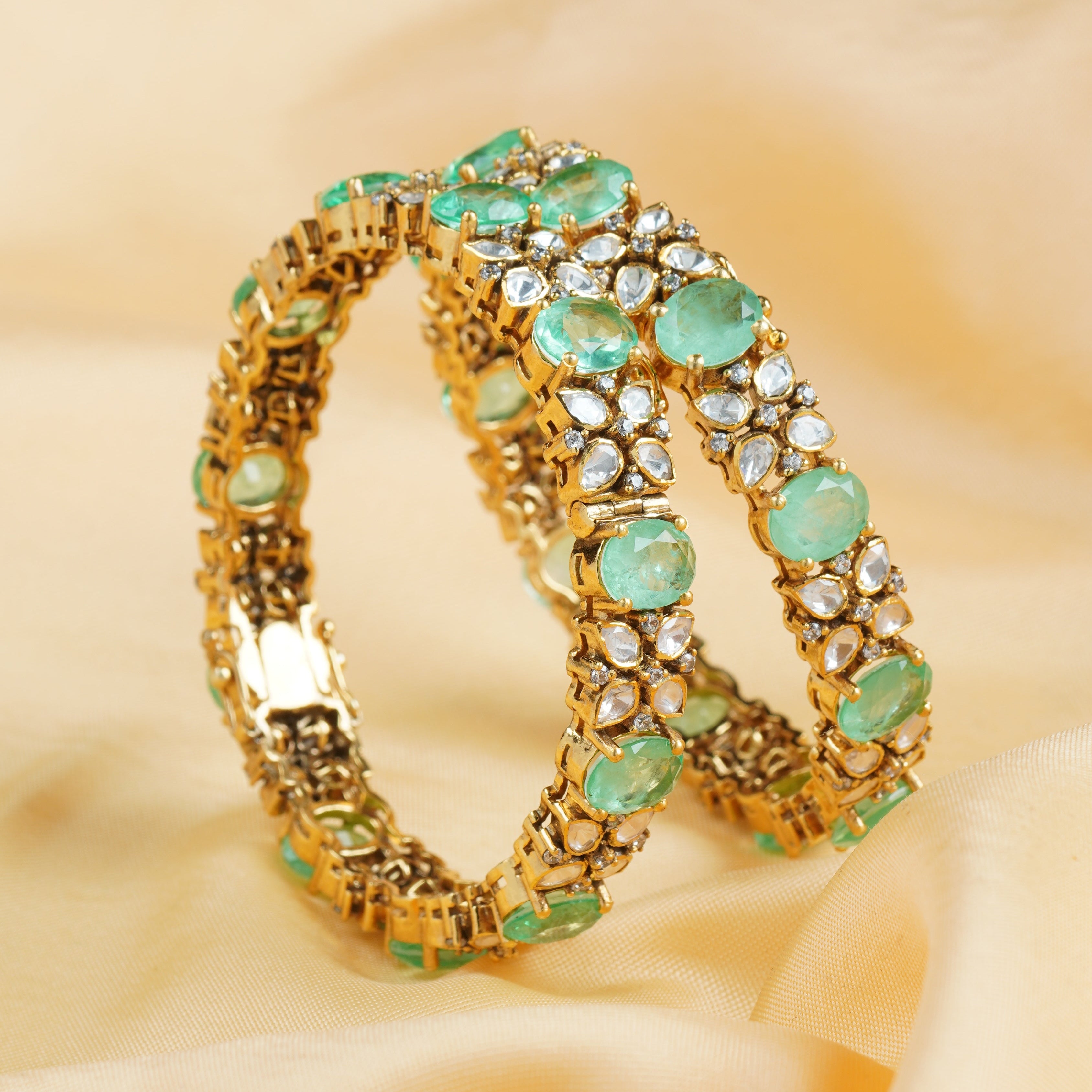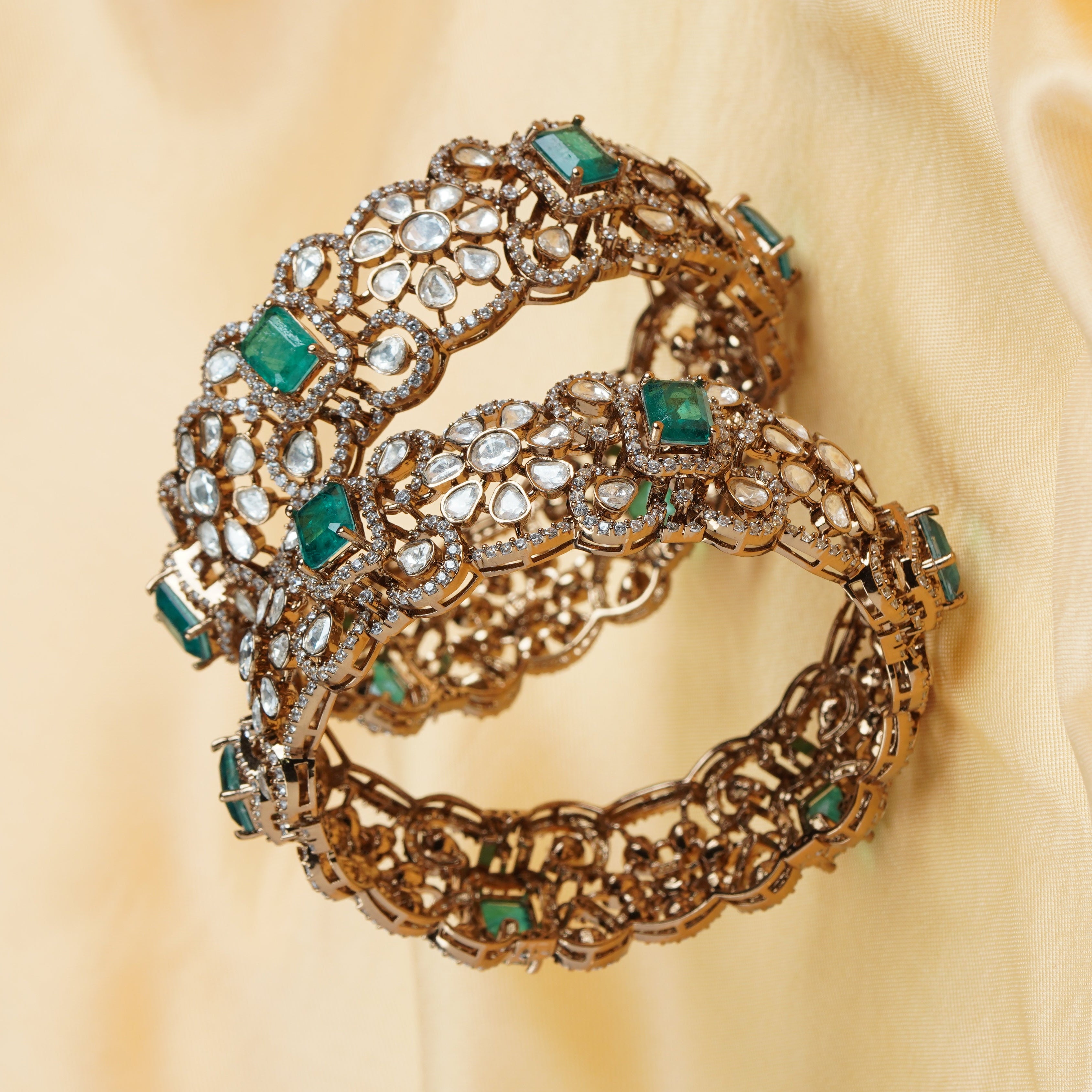 Ornate Square Emerald Bangles
