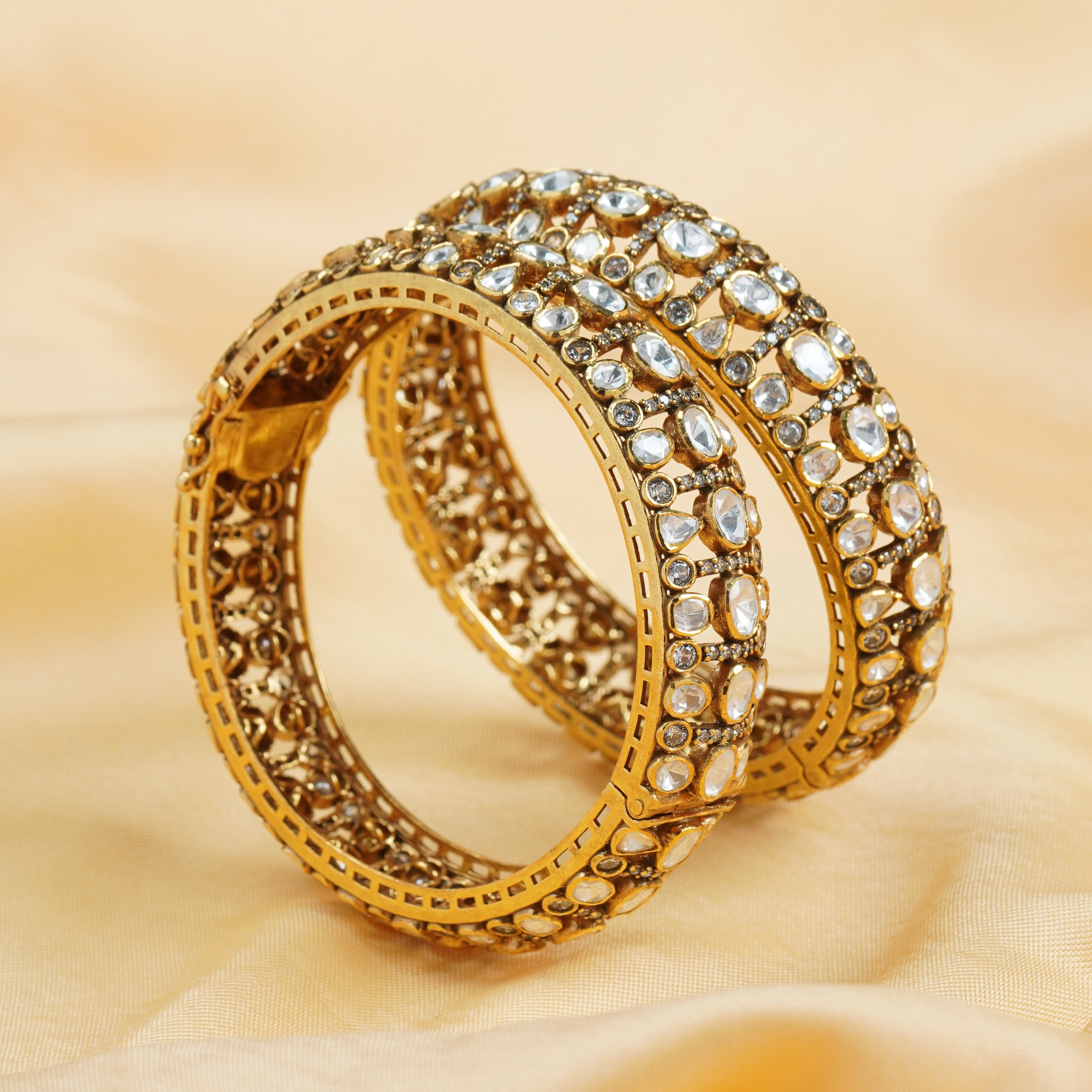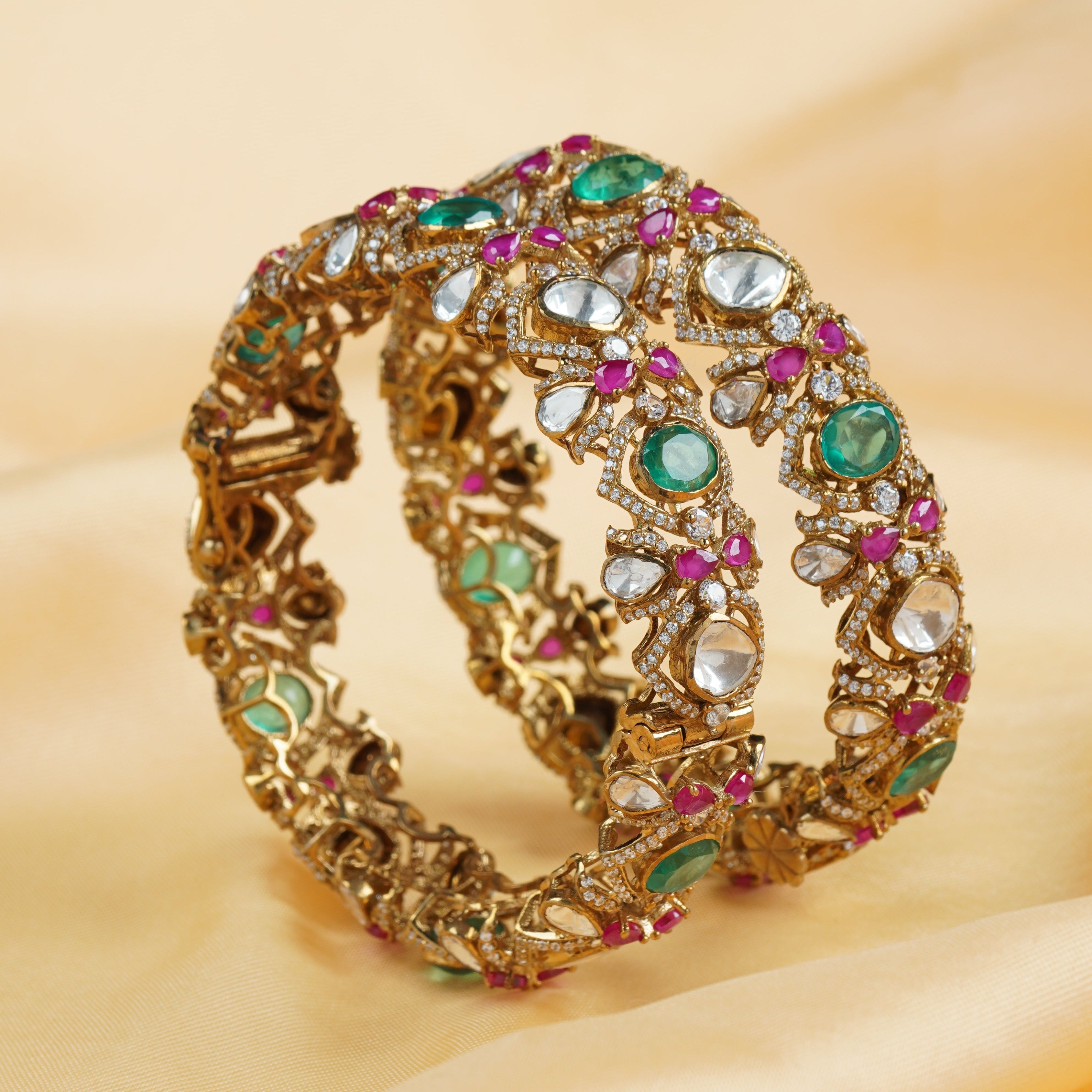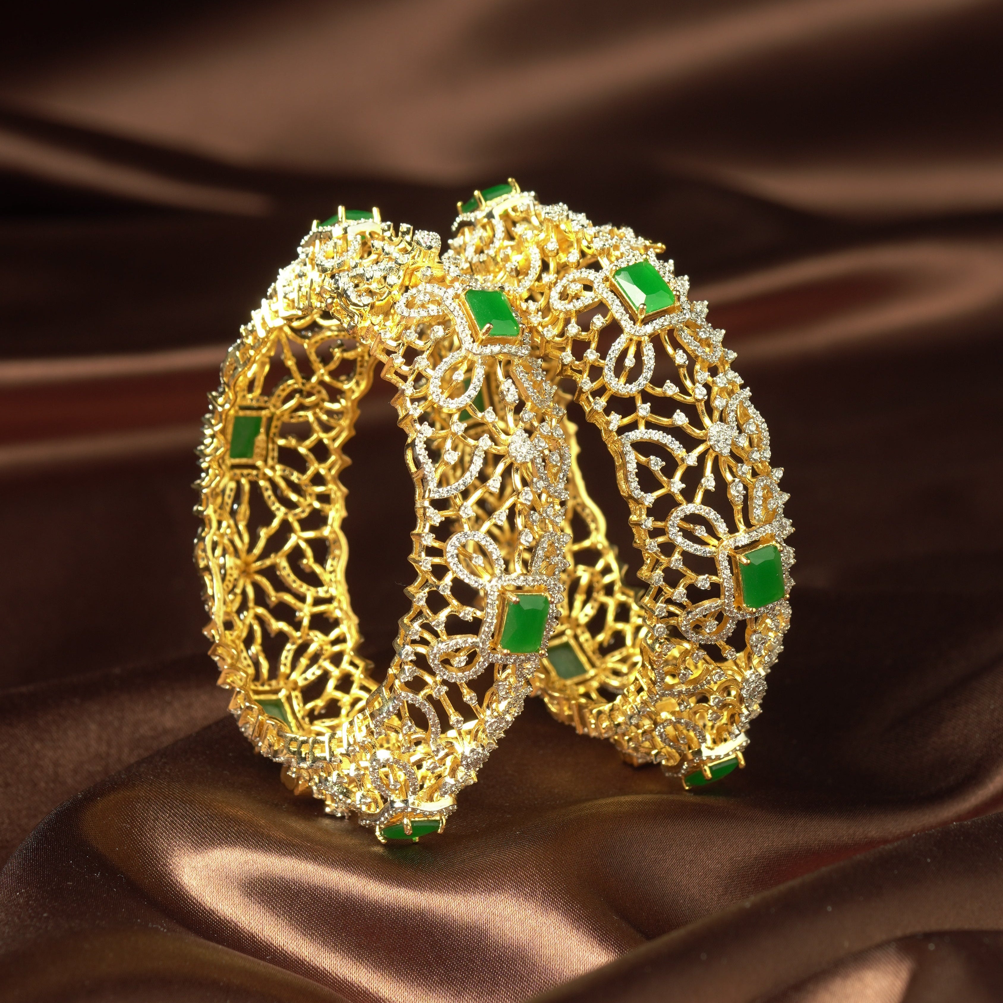 Ornate Square Emerald Bangles
