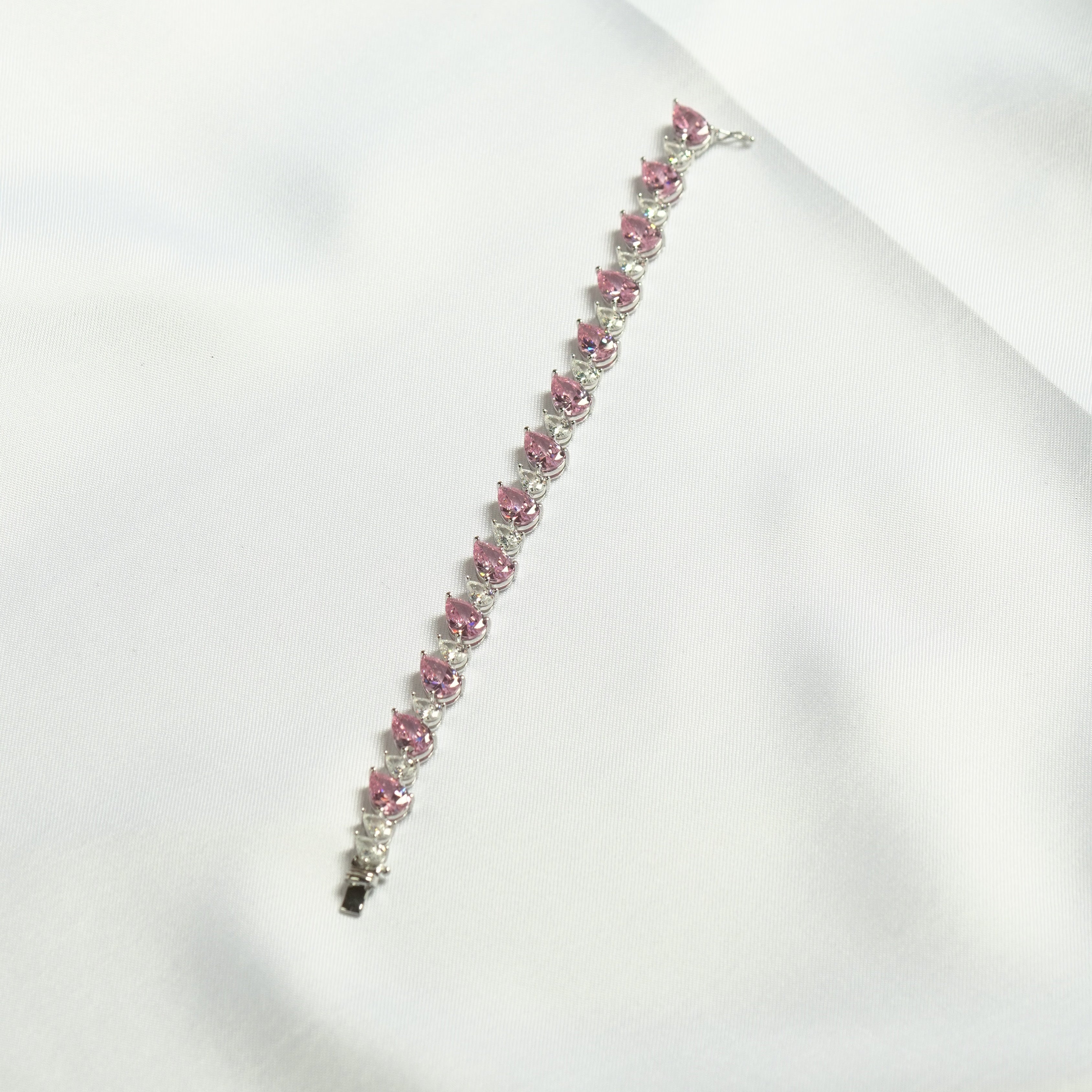 Pink Teardrop Silver Bracelet