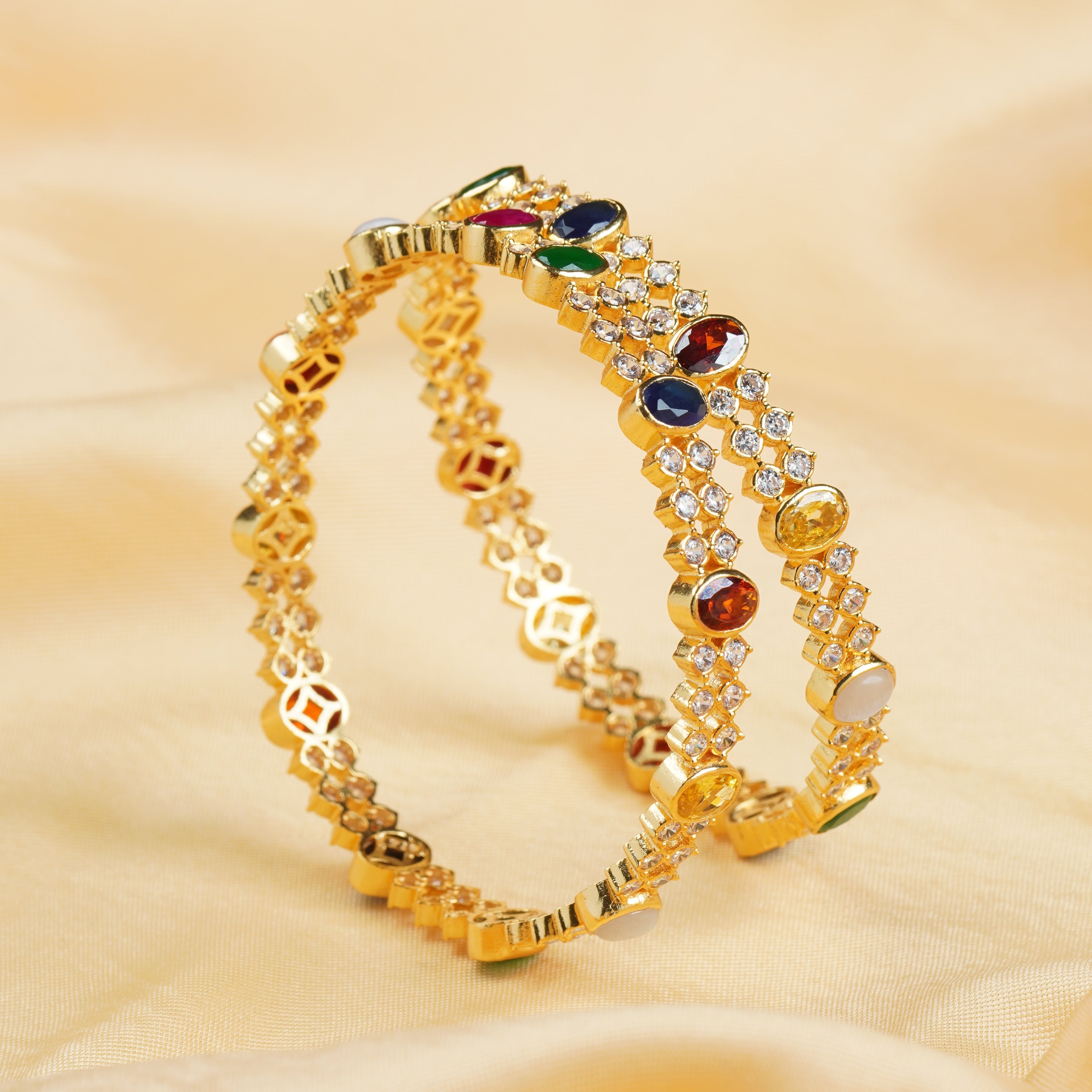 Navratna Multi Silver Bangles