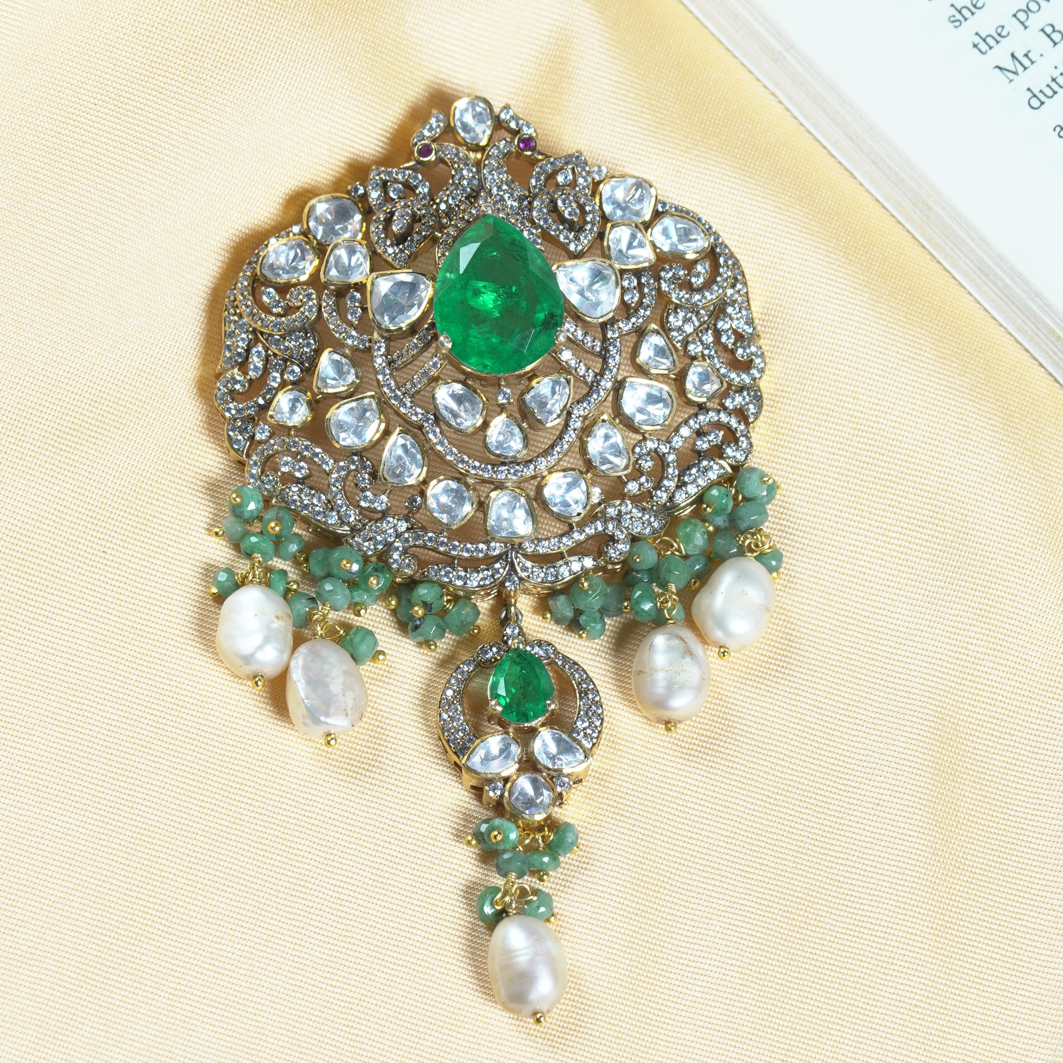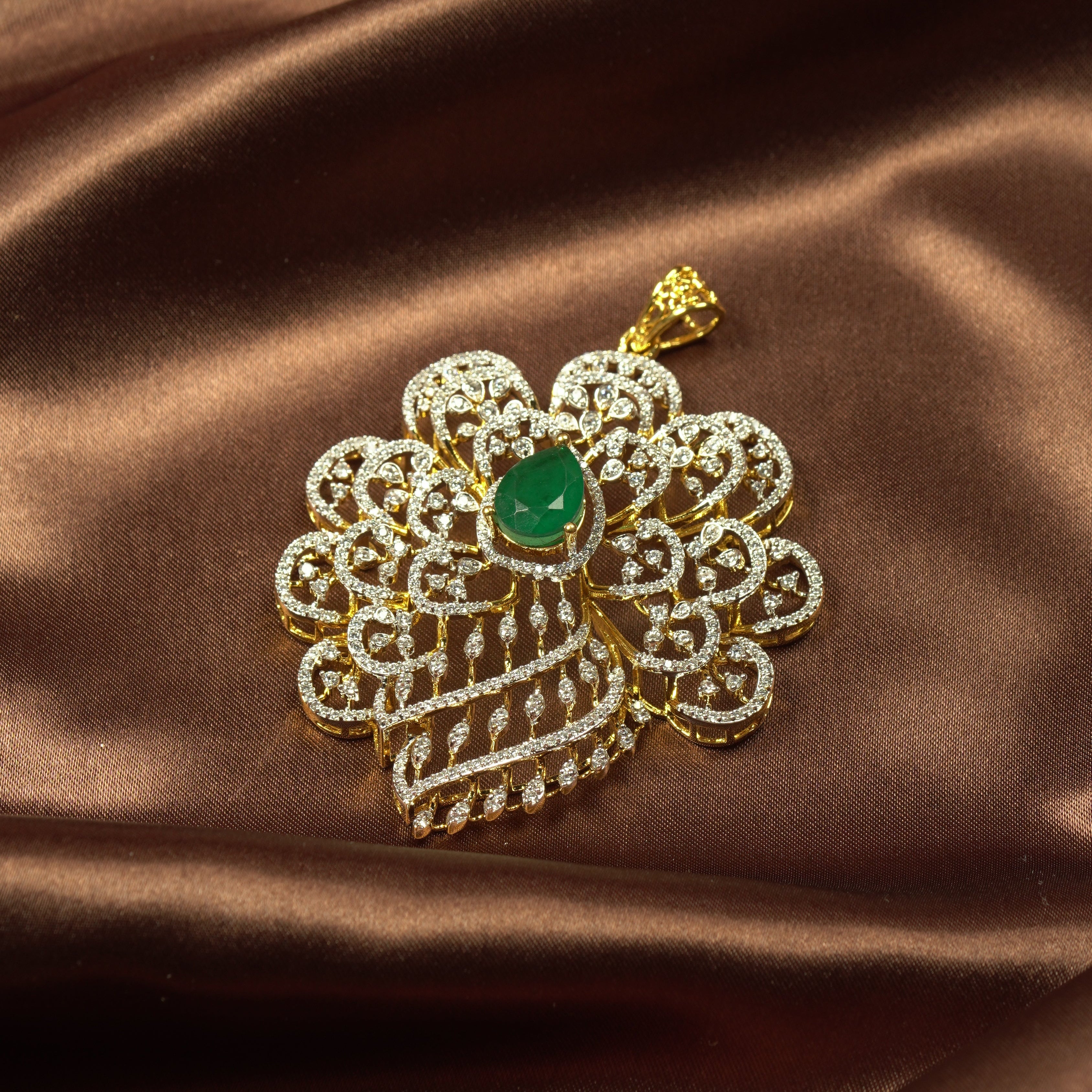 Leafy Floral Emerald Pendant