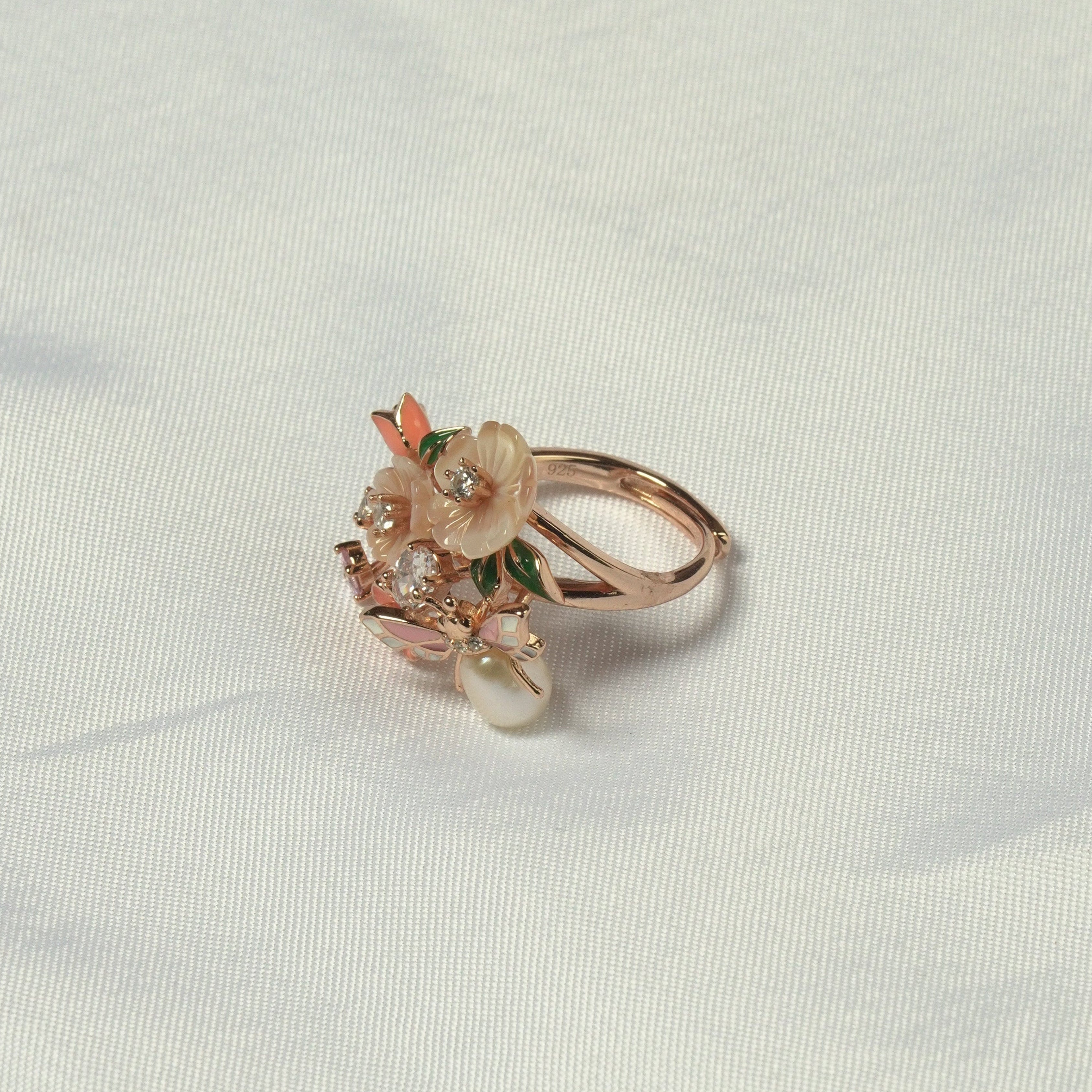 Dainty Peach Flower Ring