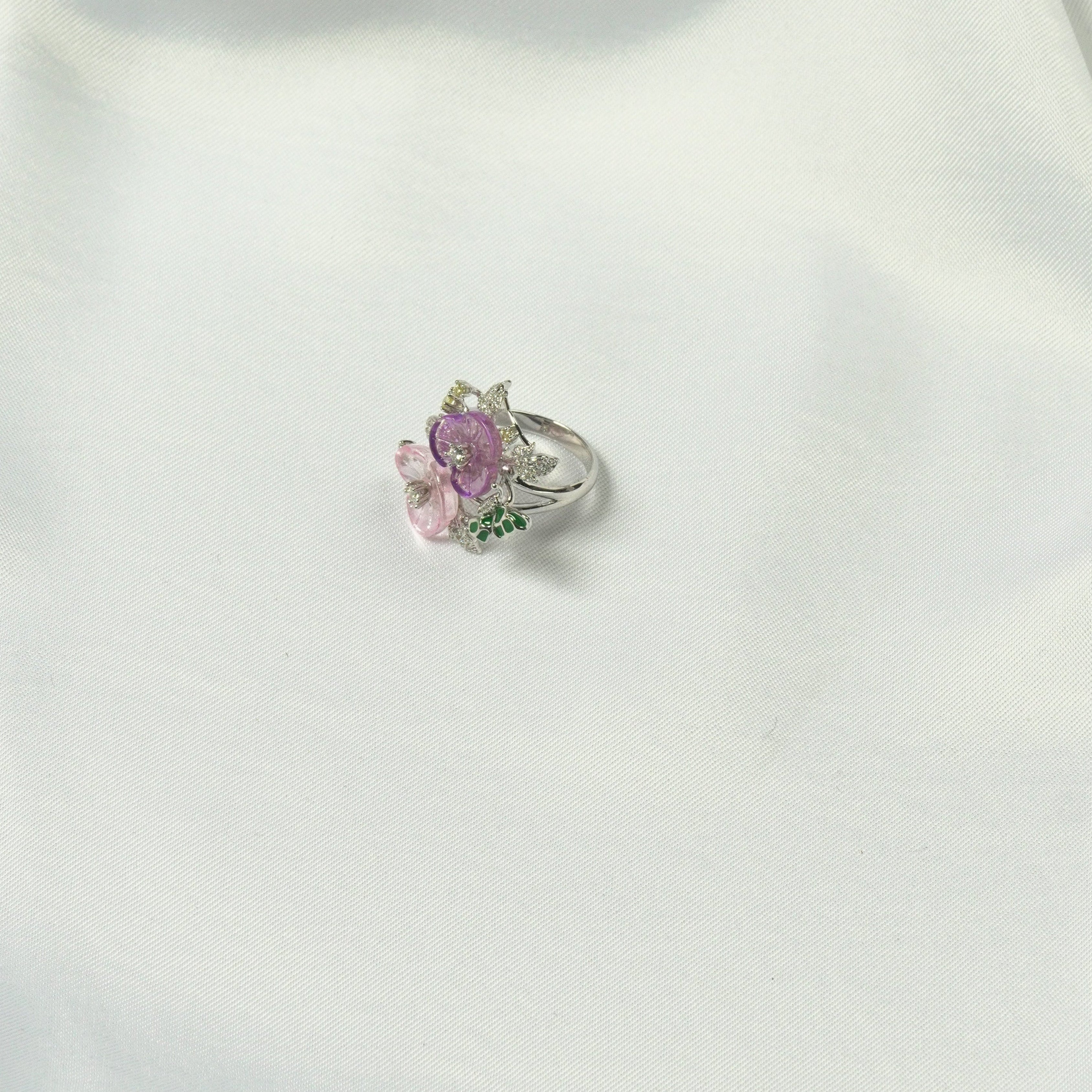 Purple Bouquet Silver Ring