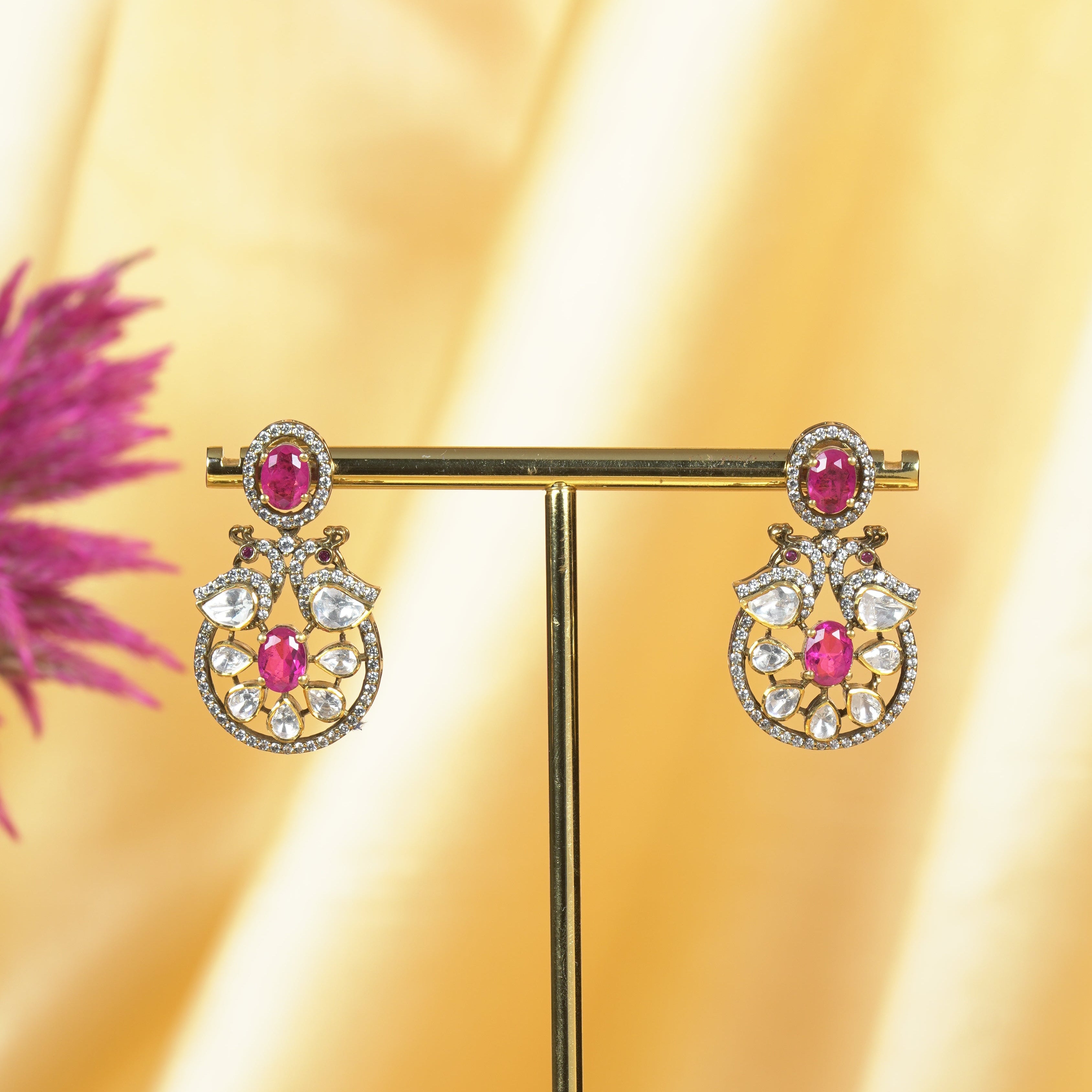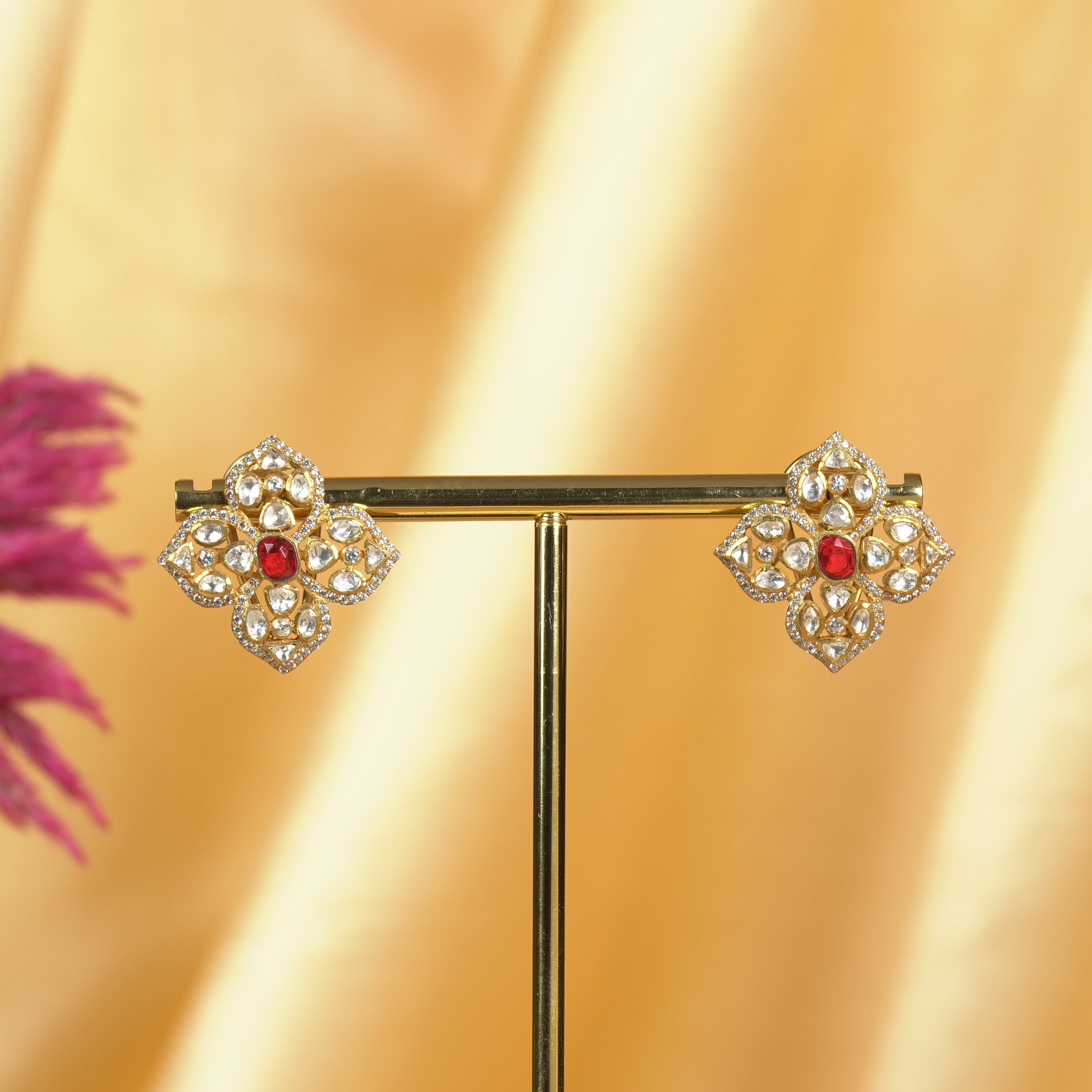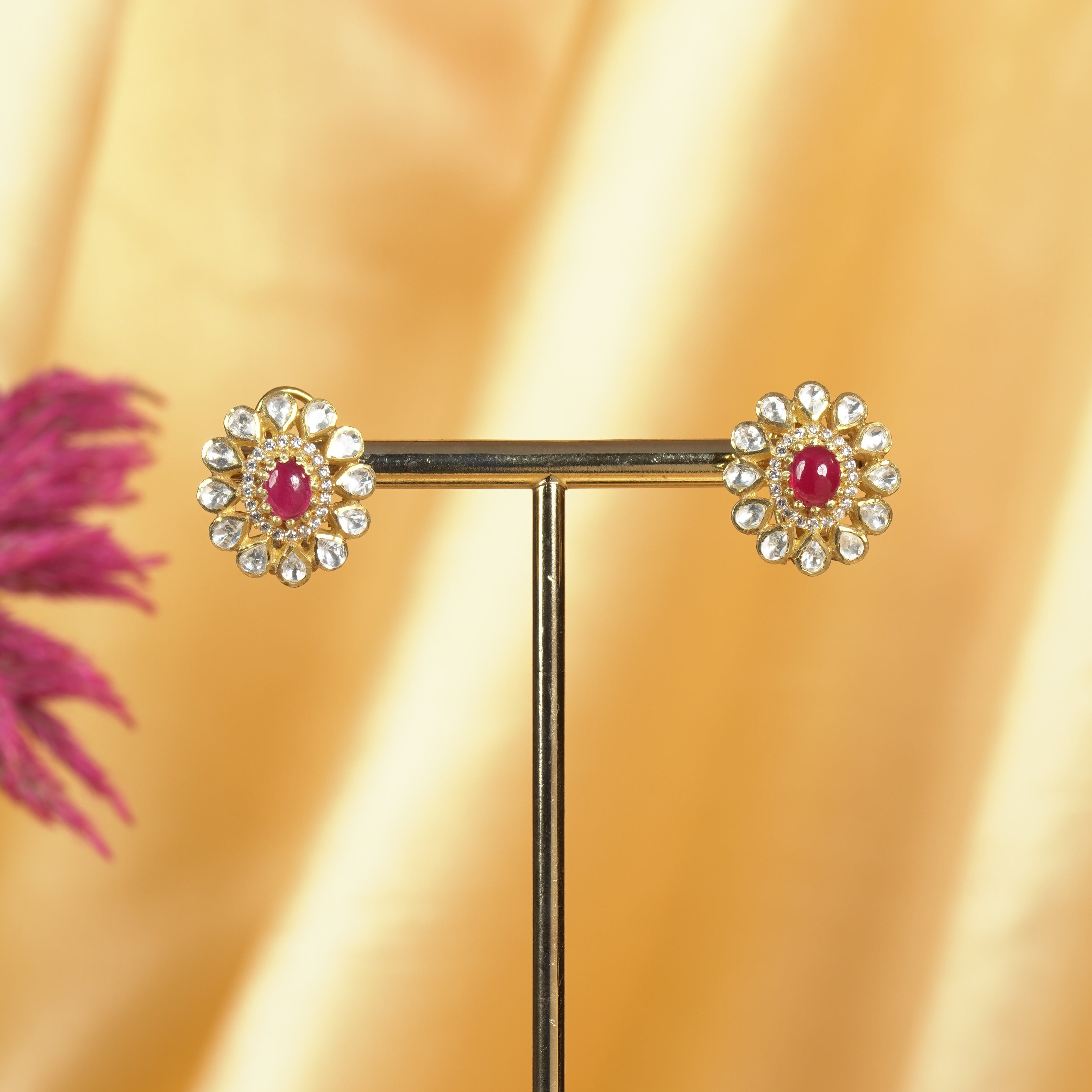 Ruby Floral Moissanite Earrings