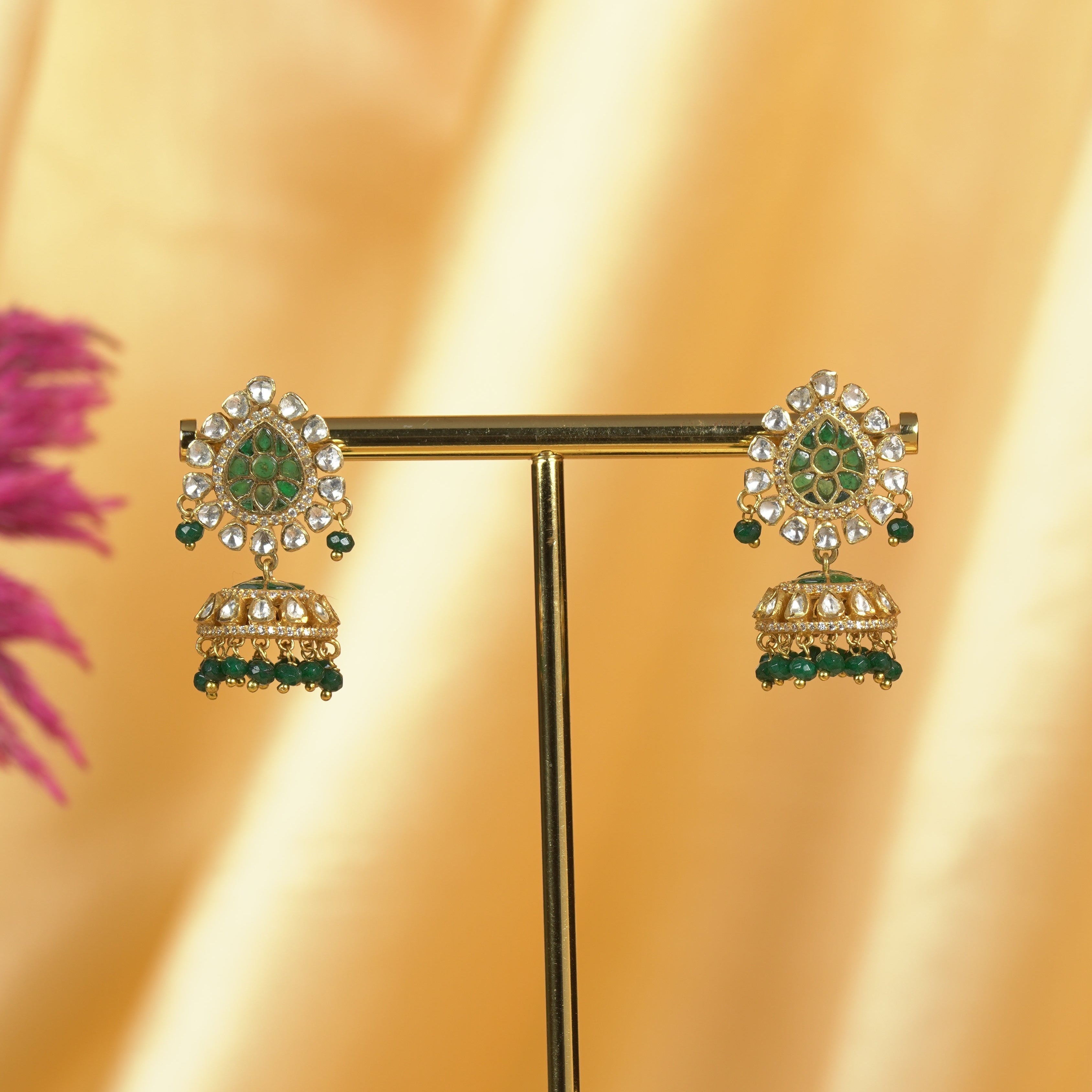 Green Jhumka Moissanite Earrings