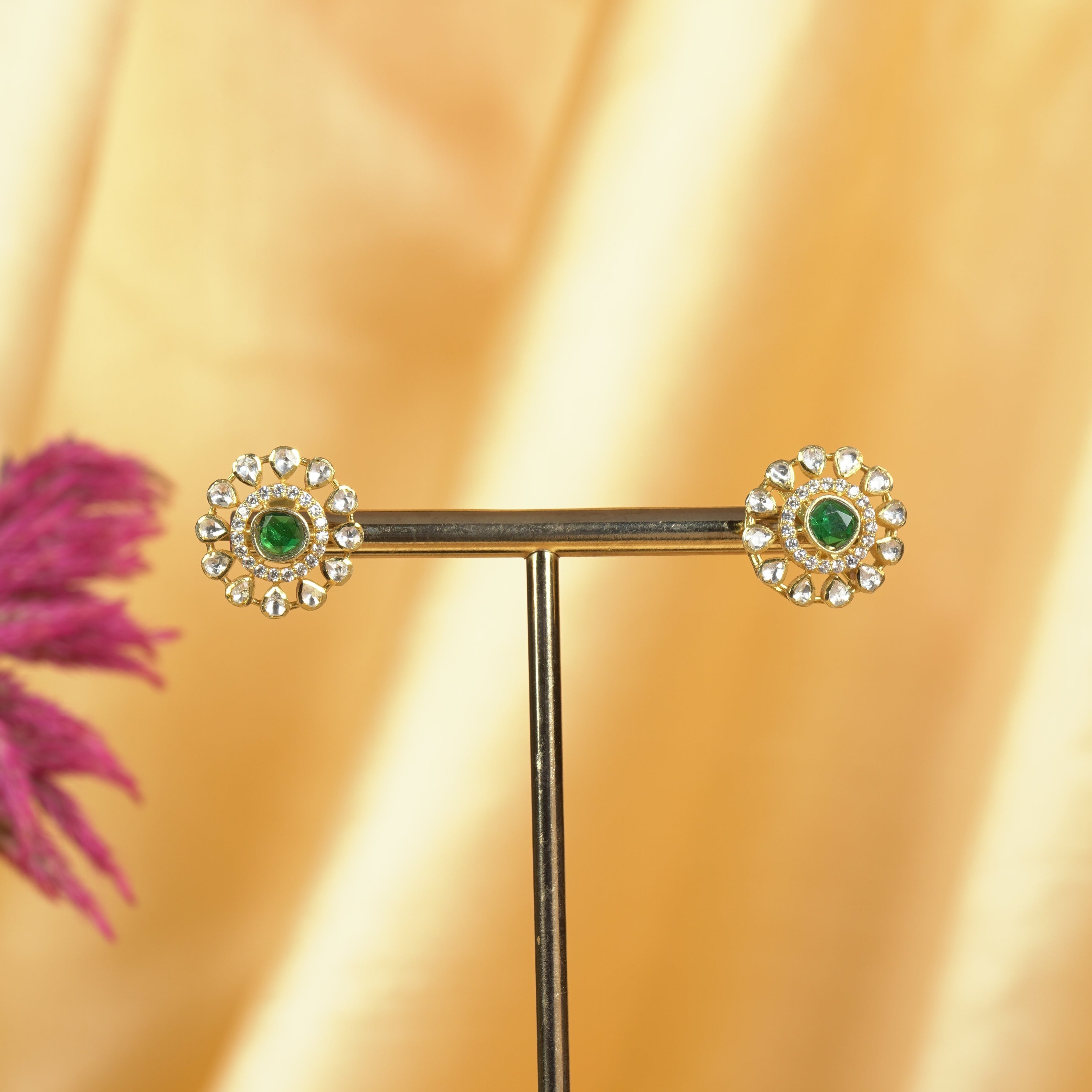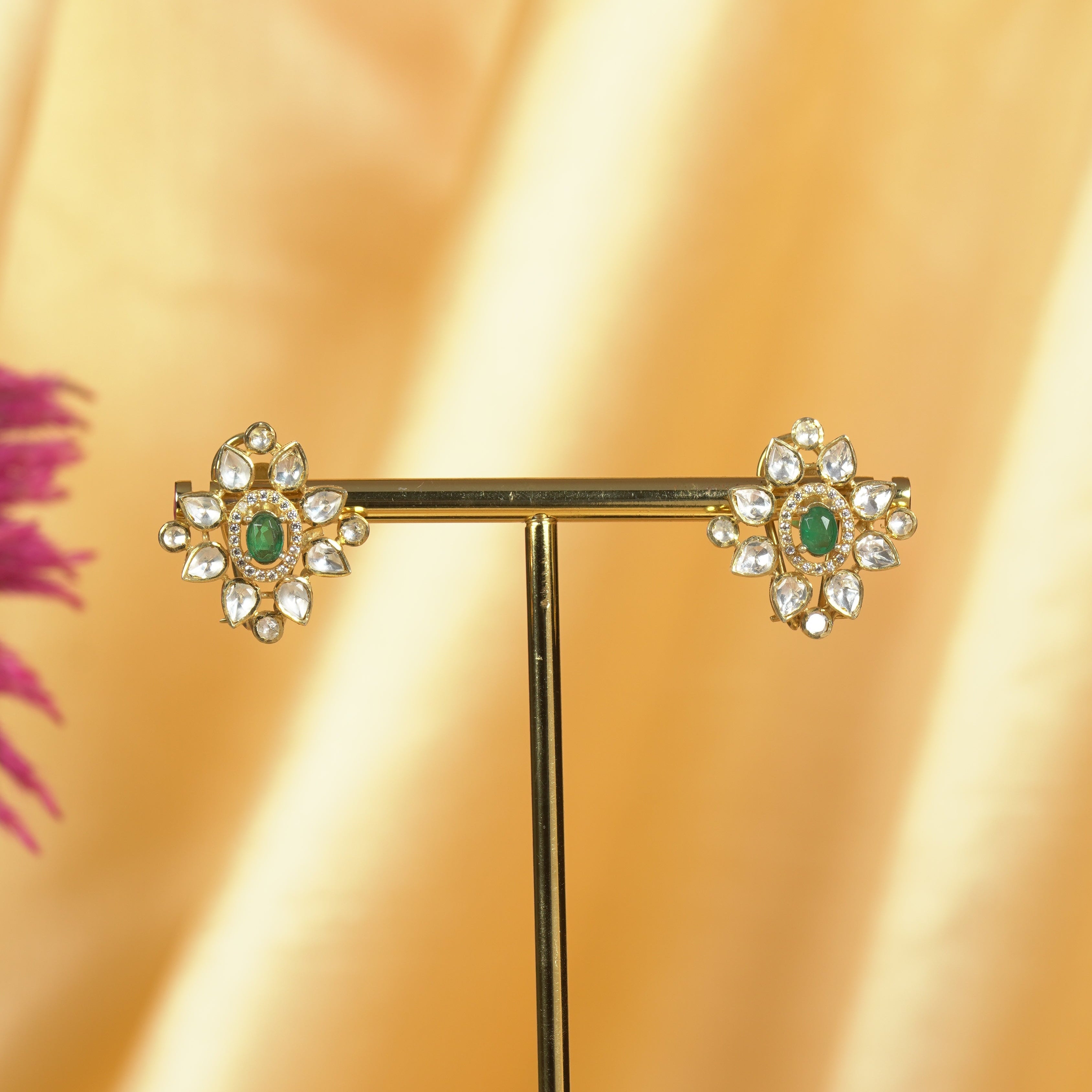 Emerald Floral Moissanite Studs