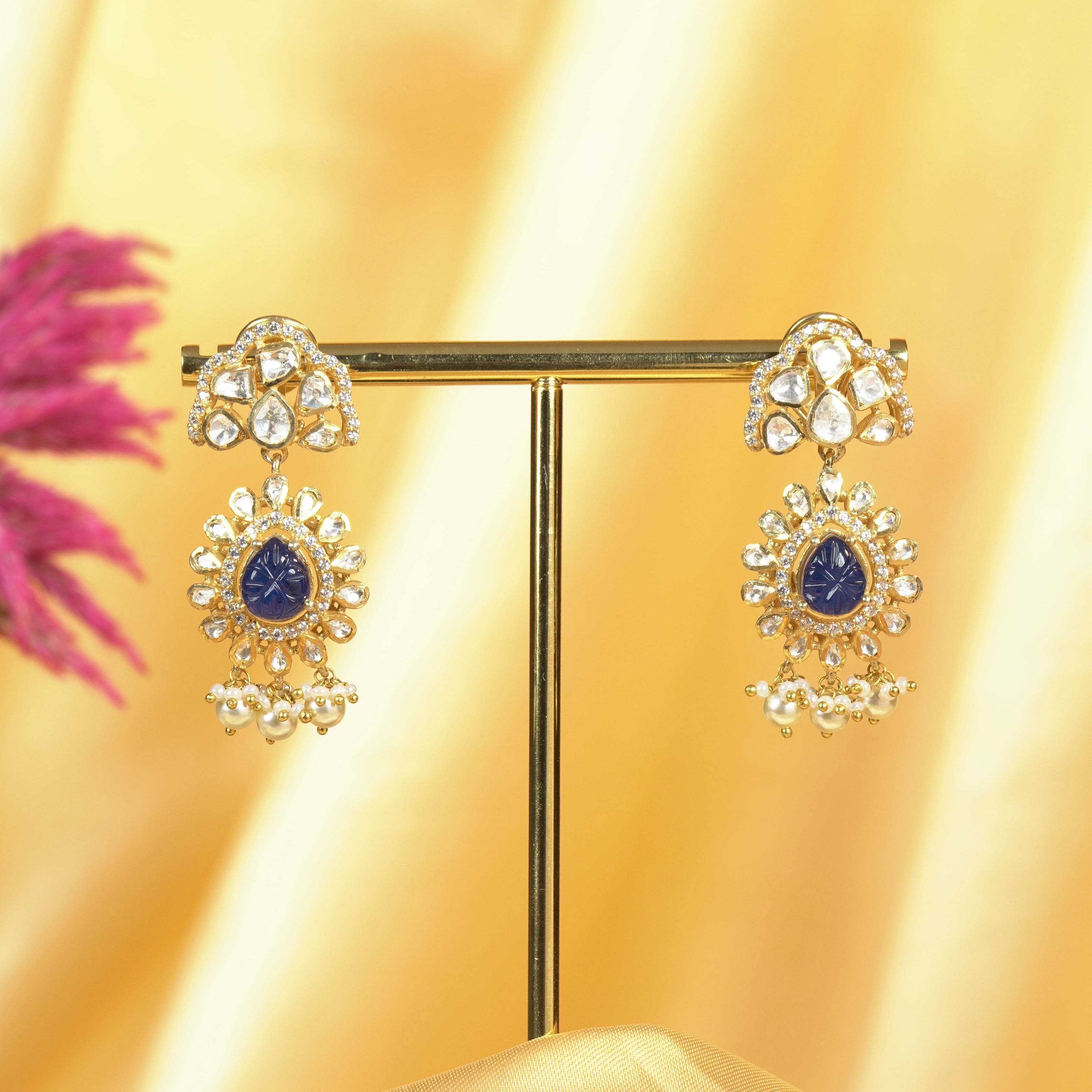 Blue Carved Moissanite Earrings