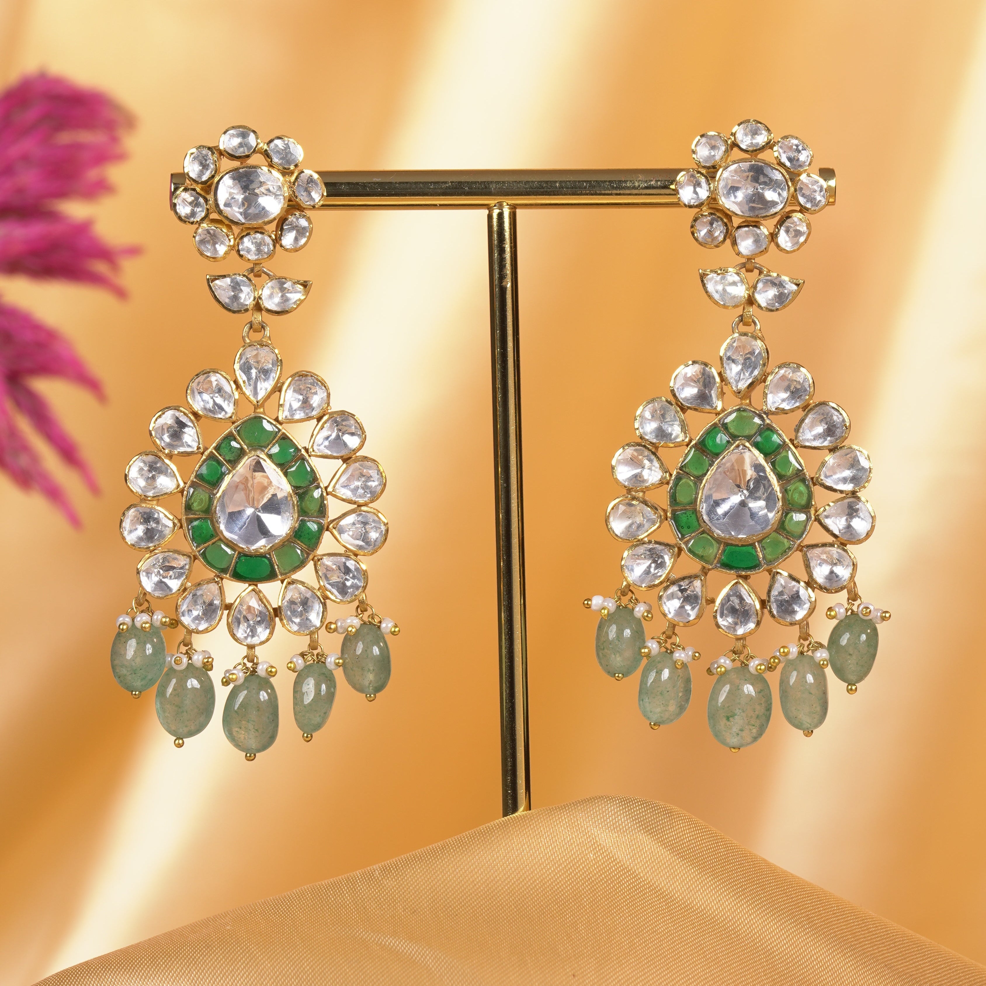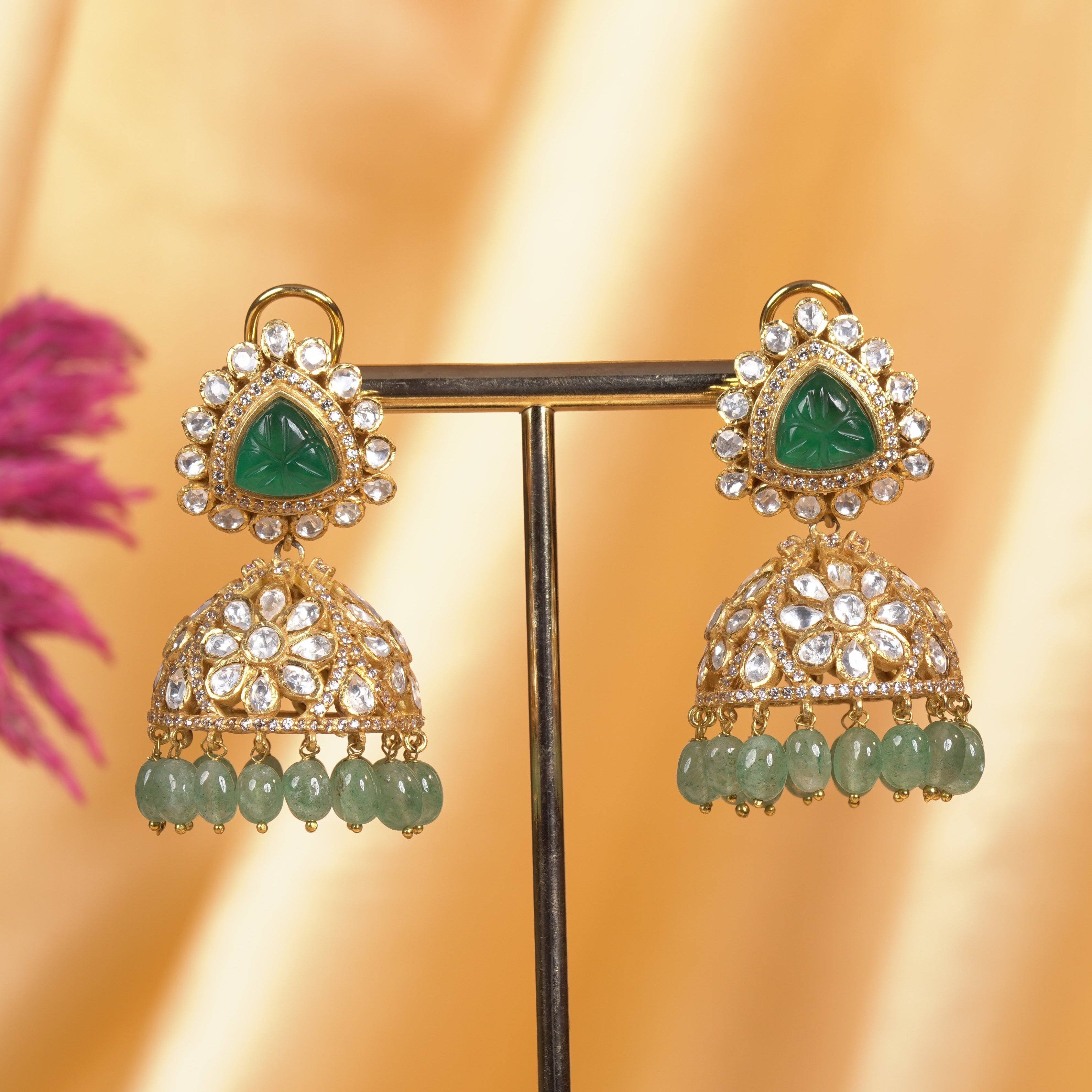 Carved Emerald Moissanite Jhumkas